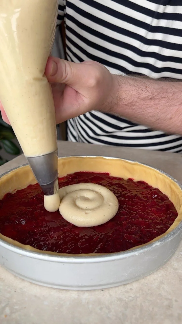Once the cake is fully cooled make the glaze. In one bowl mix together the blood orange juice and half the sugar mixing to form a thick but just pourable glaze. Do the same with the milk, vanilla and remaining sugar. You want the glazes to be thick enough that they will hold some definition when piped but loose enough that will spread together to form a uniform glaze. If you need a visual guide check out the video of the recipe on my Youtube channel.